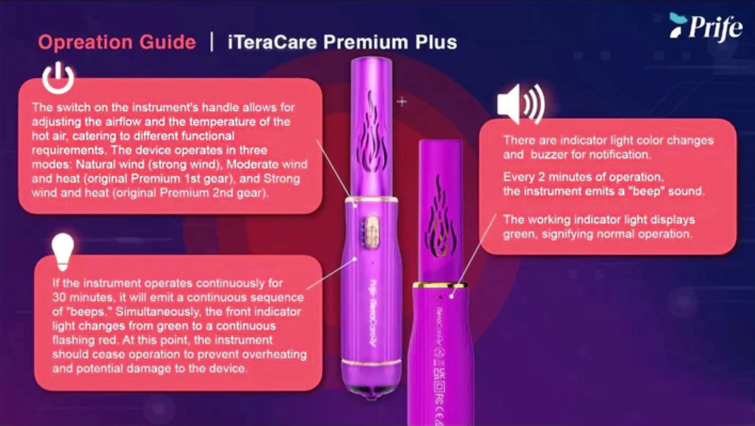 The iTeraCare blower is not medical equipment and the manufacturer provides no medical advice. Users understand that the device is not intended to be used as a medical device or for diagnostic purposes on which reliance should be placed. Its use is not intended to be relied upon in lieu of medical treatment or advice by a trained medical care practitioner. Users understand that they use the iTeraCare blower at their own risk.